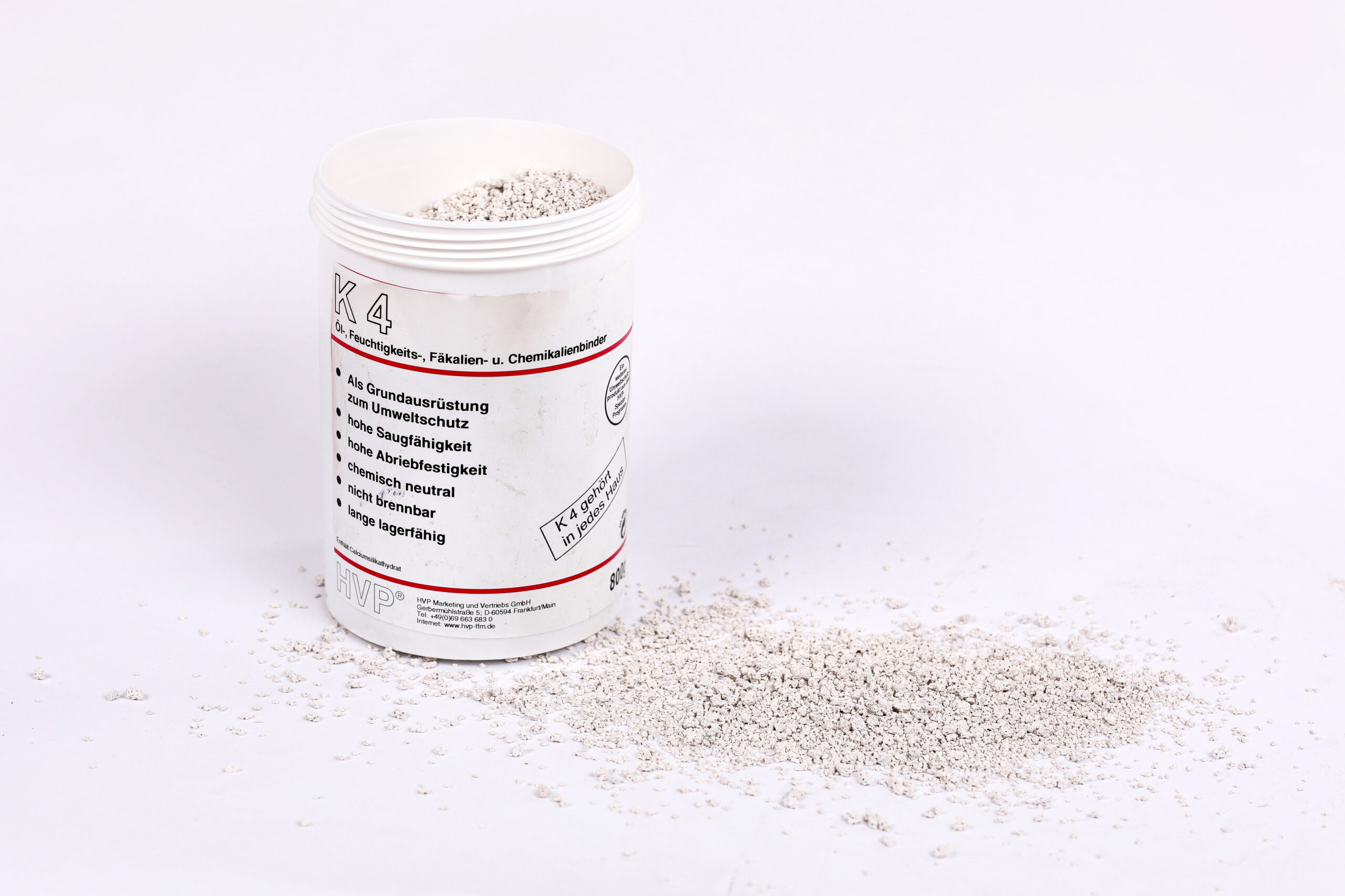 HVP K4 Bindemittel ist ein extrem saugfähiges Bindemittel. Es ist geeignet für die leistungsstarke Aufnahme von Ölen, Kraftstoff, Säuren, Laugen, sonstigen flüssigen Chemikalien und Flüssigkeiten aller Art.